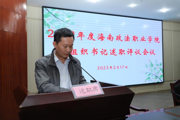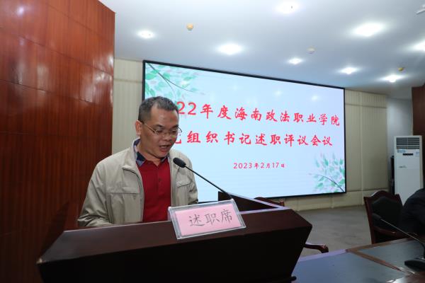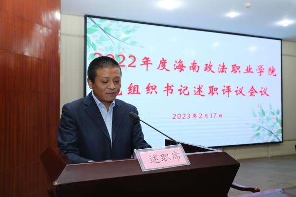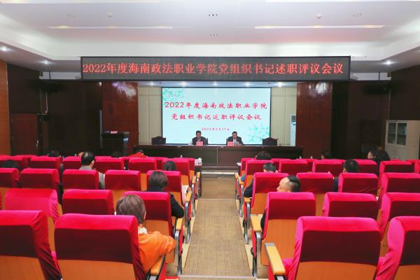 2023年2月17日下午,海南政法职业学院组织召开2022年度党组织书记抓基层党建述职评议大会。学院全体领导班子成员和有关职能部门负责人、基层党组织书记和部分基层党员代表共49人参加会议。