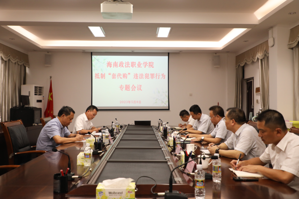 2023年5月8日,海南政法职业学院召开抵制“套代购”违法犯罪行为专题会议,传达海南省关于打击治理离岛免税“套代购”走私的相关工作部署以及会议精神,对学院开展抵制“套代购”违法犯罪行为工作进行再动员再部署。本次会议由党委副书记翁平主持,学生处、后勤处、系部等有关同志参加。
