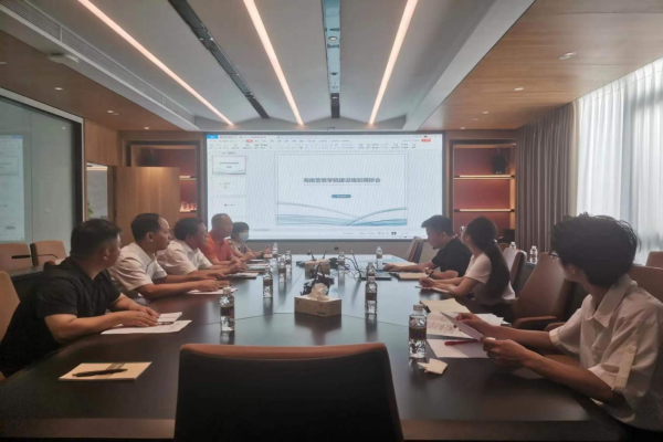 调研组一行在海南华诚工程管理咨询有限公司负责人尹优的引领下考察了该公司办公场地。随后,双方在该公司会议室进行了座谈交流。公司负责人尹优对调研组一行的到来表示热烈欢迎,并简要介绍了公司的基本情况、国内外公安类高等院校建设情况、项目进展情况、项目总体规划等情况。双方围绕海南政法职业学院转型升级校区整体规划、分期建设、功能布局等方面进行了深入交流。