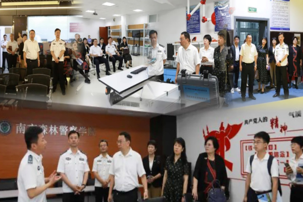 座谈会后调研组成员参观了特警学院训练馆、创伤实验室;管理学院的融媒体实验室;侦查学院的无人机警用通信装备博物馆;治安学院智警学堂、VR实验室;刑事科学技术学院野生动植物教学标本室、象牙馆、食药环快检室和信息技术学院的攻防、情报大数据等相关实验室,并分别到南京警官学院的信息学院、信息网络中心、人事党委、院办、团委和图书馆等部门开展对口交流活动。