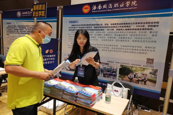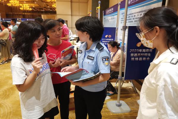 在咨询会开展过程中,许多考生以及家长前来咨询,对于我院的办学特色以及就业方向有着浓厚的兴趣,招生宣传小组着重介绍了我院警务化管理、信息化管理、专业特色、就业前景、校园生活环境等情况。并对我院专科提前批招生与海南热带海洋学院、海南科技职业大学合作开设的3+2专业进行了着重讲解。针对分数较高的考生我们建议填报我院的3+2本科专业,经过我们的详细介绍,许多考生及家长十分认同这种办学模式,认为虽然比本科院校多读一年,但是通过实操与理论的相结合教学,以后可以更好的立足社会;同时对于分数较低的考生我们建议填报我院专科提前批,并提醒考生及家长我院专科提前批次填报时间以及注意事项。通过招生宣传小组的热情解答,使前来咨询的考生及家长对我院2023年高招各专业和学院办学特色有了深入细致的了解。现场氛围活跃,宣传效果极佳,不少高考分数达二本线以上的同学积极表示很有意向报考我院。