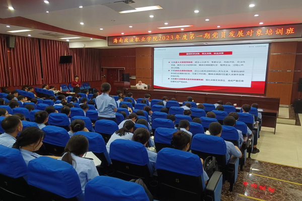 2023年6月29日晚上7点,学院党委副书记、院长陈文彬为2023年第一期党员发展对象培训班讲授专题党课。党课由党委委员、组织人事处处长郑红瑾主持,学院200余名党员发展对象聆听了讲座。