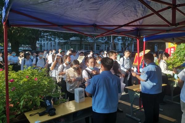 (组织考生有序入场 李兰芳 摄)