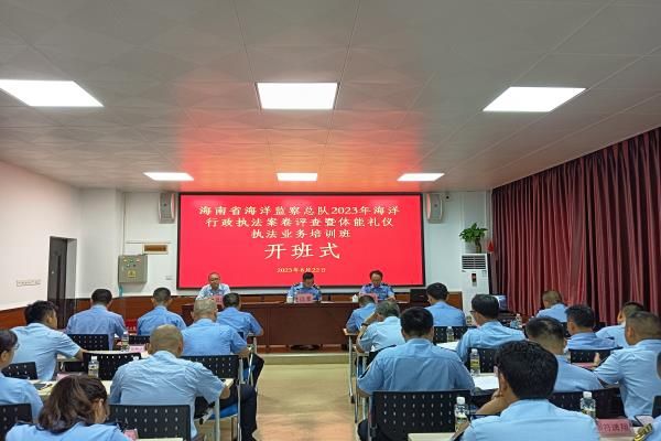 为加强海洋行政执法人员的理论素养和业务素质。2023年8月22日下午,海南省海洋监察总队2023年海洋行政执法案卷评查暨体能礼仪执法业务培训班在我院顺利开班。 海南省海洋监察总队政委闫豪,海南政法职业学院继续教育部主任刘志博出席开班式。来自海南省各市县海洋行政执法人员共35名参训。开班式由海南省海洋监察总队副总队长林明峰主持。