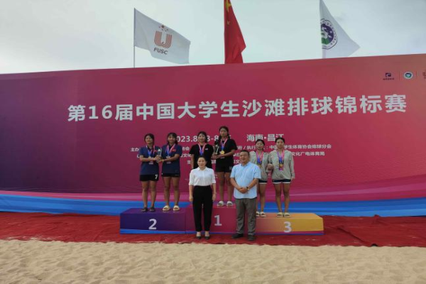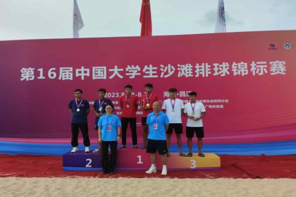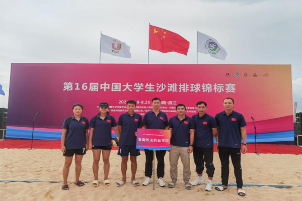 2023年8月18至24日,第16届中国大学生沙滩排球锦标赛在海南昌江黎族自治县棋子湾海滩举行。本次比赛是最高水平、最大规模、最具影响力的大学生年度沙滩排球赛事,全国大学生52支代表队报名参赛,赛事分为甲组(阳光组)、乙组(高职高专组)、丙A组(高水平A组)、丙B组(高水平B组)和丁组(超级组)五个组别。我院代表队在领队何光丰主任,教练员王帅、李选上、符超翔、王时锐带领下,派出男队(李乃坤、张江东),女队(林青瑶、陈婴冰)两支代表队参加了乙组(高职高专组)的比赛。