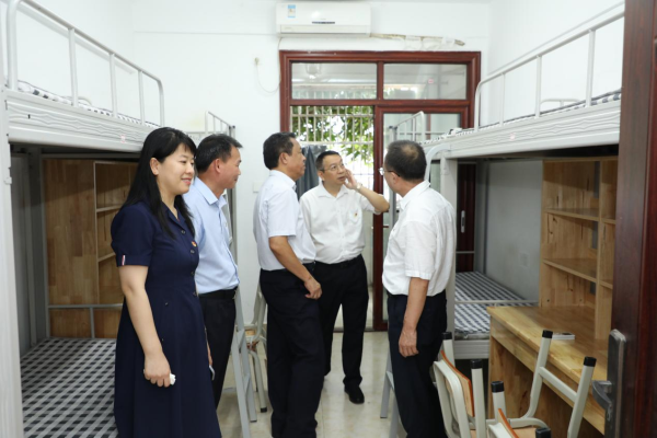 院领导先后走访了南门志愿者服务站、系部迎新现场、备装发放现场、食堂、新生公寓等地,了解迎新工作开展情况。