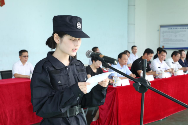 学生代表曾紫艳在动员会上做发言。她说道,军训是大学生入学的第一课,是为大家今后的学习和生活奠定坚实基础的必要经历,它是挑战,同时也是一场历练、一次成长。我们将严格要求自己,听从指挥,服从命令,严格遵守军训纪律和作息时间,以饱满的热情和昂扬的斗志投入到军事训练中。深刻感悟军人无私奉献、迎难而上的精神和崇高品质,发挥同心协力、艰苦奋斗的优良传统,遵守学院警务化管理规定,践行德法兼修、知行合一的校训。