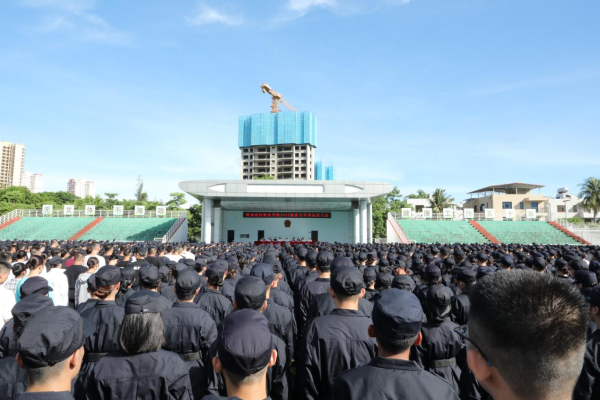 2023年9月12日上午,海南政法职业学院在田径场举行2023级新生军训动员大会,2500余名新生军事技能训练全面展开。学院党委副书记翁平出席动员大会并讲话,相关部门负责人、全体学管、2023级全体学生及全体承训教官参加开训动员。动员大会由学生处处长、学院武装部部长傅清学主持。