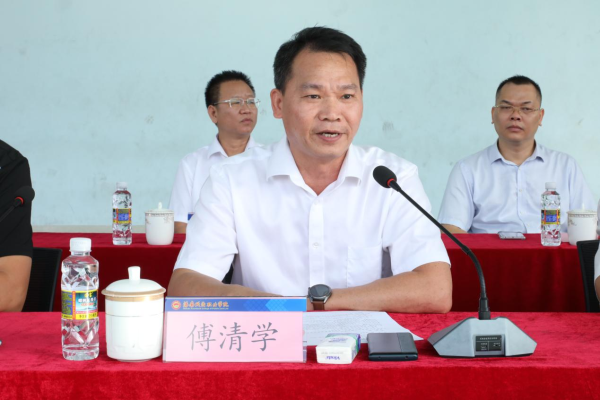 (学生处处长、学院武装部部长傅清学主持动员大会 高就 摄)