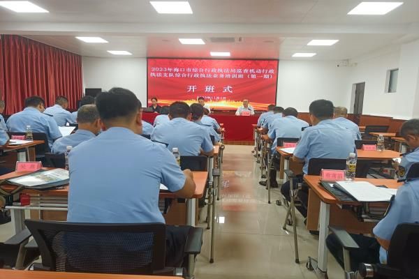 为深入学习贯彻习近平新时代中国特色社会主义思想,学习贯彻习近平法治思想,全面贯彻落实党的二十大精神,适应新形势下综合执法工作要求。11月1日上午,2023年海口市综合行政执法局巡查机动行政执法支队综合行政执法业务培训班(第一期)在我院顺利开班。海口市综合行政执法局巡查机动行政执法支队支队长屈冠峰、海南政法职业学院继续教育部主任刘志博出席开班式。来自海口市综合行政执法局巡查机动行政执法支队干部职工共31人参加开班式。