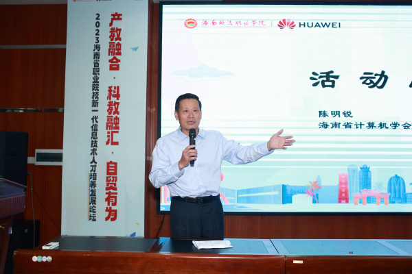 本次论坛由海南省教育厅指导,海南省计算机学会主办,海南政法职业学院和华为技术有限公司共同承办。教育厅一级调研员张超、海南省计算机学会理事长陈明锐、学院副院长马得懿、教务处处长李艳、信息中心主任刘云,公共安全技术系领导和师生代表以及省内外30余所兄弟院校60余名领导和专家学者参加了本次论坛。