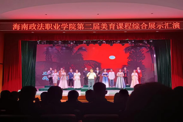 为提高我院学生的人文素养,促进学生全面发展,11月27日晚,公共教育部美育教研室、语文教研室和英语教研室在千人礼堂联合举办了美育(人文素养)课程综合展示汇演。海南省音乐家协会主席陈新,海南省文化艺术教学指导委员会主任委员许劭艺,海口市音乐家协会主席蔡先民,海南省文化艺术教学指导委员会副秘书长陈丽娇,我院党委副书记翁平,党委委员、副院长王春霞出席汇演,我院教务处、学生处、公教部、各系的主要领导以及学生等共600余人观看了此次汇演。