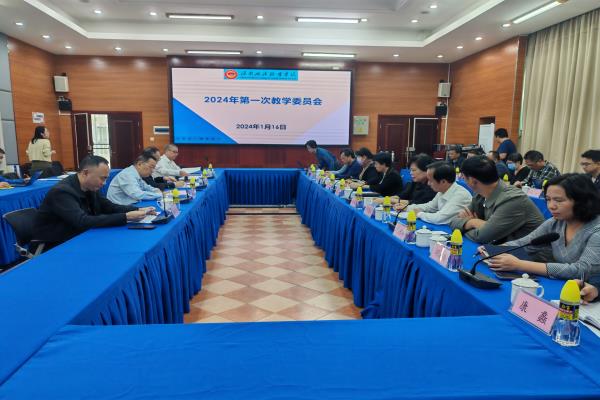 2024年1月16日下午,海南政法职业学院在培训中心第二会议室召开2024年度第一次教学委员会,学院党委书记庄才德,学院党委副书记、院长陈文彬,副院长林炽海,副院长马得懿以及全体教学委员参加了本次会议。