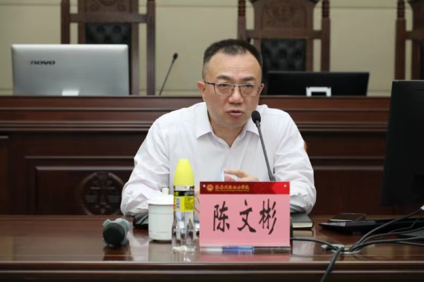 陈文彬院长首先以“学在当下,赋能未来”为主题,结合我院转型、攻坚、提升的迫切需求,以我院“海南省青少年犯罪与法律援助研究中心”教学研一体化平台为实例,对全院教职工如何实现个人与学院同步转型升级提出了具体的要求:一是紧紧抓住成长窗口期,全力提升能力本领。在教学管理实践中、在教育改革发展中锻炼成长,尽快成为各自研究领域内的专家能手。二是加快融入发展共同体,全力加强学科专业建设。学院将多措并举加快推动教师的转型发展,不断优化师资结构,加强内涵建设,提升人才培养质量。三是做经师与人师统一者,全力培养时代新人。希望我院教师要敬畏讲台、热爱学生,在教育教学、科学研究、服务社会中更好地担负起学生成长指导者和引路人的责任。