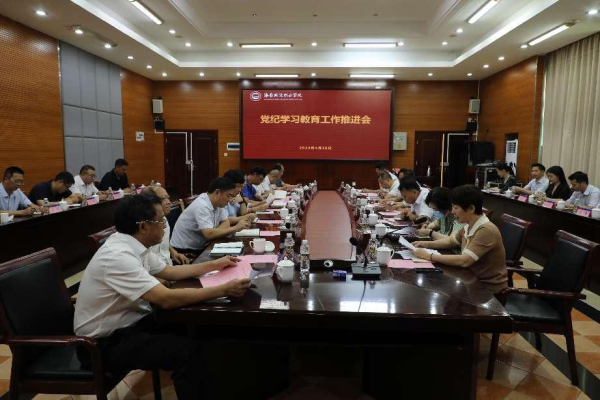 4月26日上午,学院在培训中心第二会议室召开党纪学习教育工作推进会,部署党纪学习教育相关工作。学院党委委员、副书记翁平,党委委员、纪委书记李新亮,各党总支、党支部书记,党纪学习教育专班成员参加。会议由组织人事处处长郑红瑾主持。