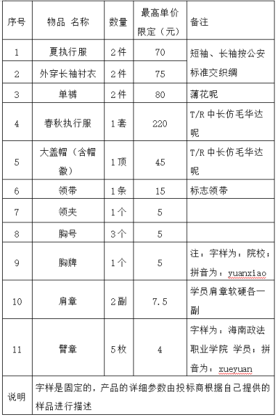 6、开标地点:海口市海南政法职业学院内