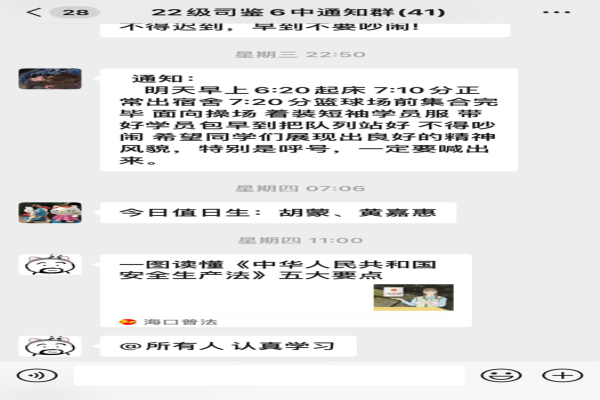法律就像人生的红绿灯,更像是一条警戒线,时刻提醒我们不逾矩不越线。组织学习了《中华人民共和国安全生产法》,强调学习贯彻习近平总书记关于安全生产重要论述是做好安全生产工作的首要前提;要统筹发展和安全,坚持人民至上、生命至上;树立安全发展理念,发展决不能以牺牲安全为代价;强化底线思维,增强忧患意识;学习新安全生产法,以极端负责的态度,从严从实抓好安全生产,为学生成长创造良好的安全环境。