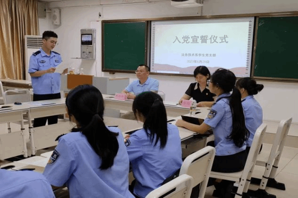 2023年6月29日,我院法务技术系党支部书记李俊丽在实训楼613教室党旗前举行新党员入党宣誓词仪式。党总书记刘扬勋,学生党支部书记李俊丽,在校党员学生参加活动。仪式由党支部书记李俊丽主持。