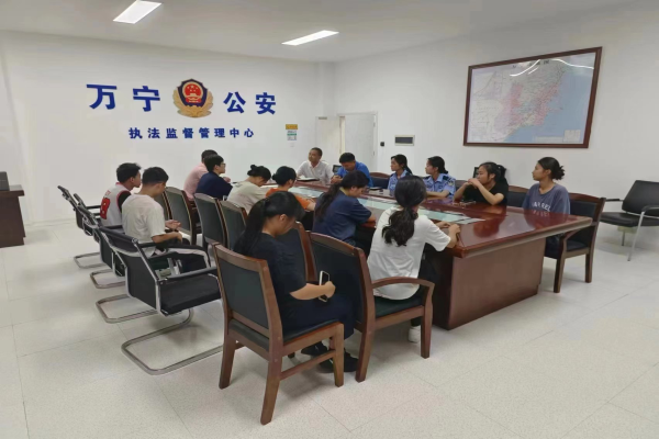 为深入推进学习贯彻习近平新时代中国特色社会主义思想主题教育,加强我院应用法律系与实习单位之间的沟通交流,提升我院应用法律系学习毕业实习质量,2023年7月31日下午,我院应用法律系法律事务(自贸港法务方向)专业负责人褚福欣、法律事务专业负责人全建刚及专任教师吴佩芹赴万宁市公安局执法办案管理中心检查实习工作、看望实习生。一行人员与万宁市公安局法制大队大队长周旺搏及实习生们开展了交流座谈。会上实习生们畅所欲言,分享了实习期间的收获,反映了遇到的问题,褚老师和周大队长分别进行了解答,并鼓励同学们保持在学校的良好作风,认真完成实习。