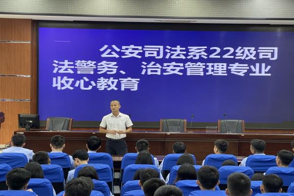 2023年9月3日是我院学生最后一天返校报到的日子。为落实警务化管理要求,增强学生警务化管理意识,尽快让学生收心回校学习,当天下午我院公安司法系组织22级司法警务、治安管理两个专业学生开展暑假后的收心教育工作。