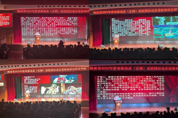 京剧在台上唱响百态人生,锦绣华章流传千古。为了丰富校园文化的多样性,提高学生的艺术素养和审美能力,增强学生对传统文化的认同感,深入了解戏曲的发展历程和艺术内涵,激发学生对戏曲研究的兴趣,10月18日晚,我院法务技术系在千人大礼堂参与了海南省2023年度戏曲(京剧)进校园演出活动。