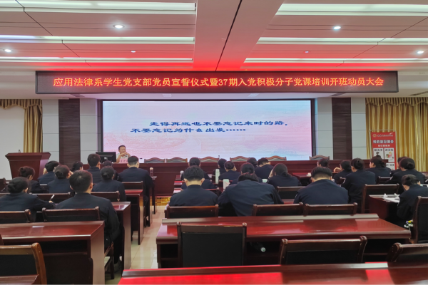 为引导入党积极分子深入学习党的理论知识,遵守党的章程,在思想上、政治上、行动上始终与党中央保持高度一致。10月25日下午,我院应用法律系学生党支部在实训楼一楼报告厅开展第37期入党积极分子培训班第一讲,由我院应用法律系党总支书记王之业主讲。
