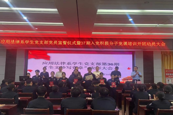 会上,应用法律系学生党支部宣传委员地力木拉提·吐尔逊宣读了表彰名单,随后,由参加会议的领导、老师为获奖学生颁发证书。在此次表彰中,共有40名学生获得奖项,其中,一等奖4人、二等奖8人、三等奖12人、优秀奖16人。