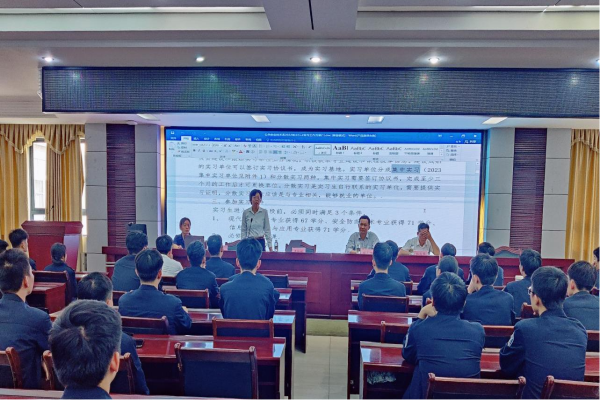 会议议程分为四部分。首先,由公共安全技术系潘仕彬主任宣布实习方案,并为学生们解读实习的相关规定和要求。接着公安司法系思政课杨成群老师为学生们进行了实习思想动员,鼓励大家在实习期间要积极思考、认真工作,发挥自己的专业优势。随后系党总支书记林承师从明确目的、克服困难、严守纪律和安全守法等四个方面做了深刻的实习动员,提醒学生们在实习期间要严格要求自己,遵守相关规定和制度。最后辅导员沈洪斌老师就实习制度和注意事项做了实习安全教育,强调了安全第一的重要性。