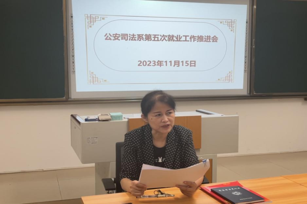 为贯彻落实学院毕业生就业有关工作部署,聚焦毕业生就业工作,全力助推2023届毕业生更高质量、更充分就业,11月21日,我院公安司法系在教学楼召开第五次就业工作推进会。本次会议由系主任宋红彬主持,公安司法系各专业负责人、专业教师以及毕业班所属辅导员参加此次会议。