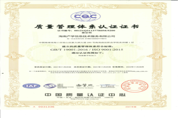 海南产学信息技术服务有限公司自2016年通过质量、环境和职业健康安全管理体系(以下简称QEHS管理)认证以来,坚持按照体系标准要求积极开展工作,各项管理制度及标准日益完善,管理体系愈发规范科学。
