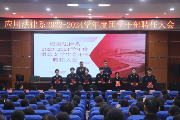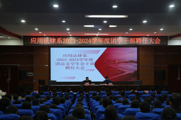 为增强应用法律系团学干部队伍建设,切实加强三全育人教育工作,充实学生干部后备力量,开拓工作新局面,12月19日,我院应用法律系于阶梯教室召开2023-2024学年度应用法律系团总支学生会干部聘任大会。应用法律系团总支负责人地力木拉提·吐尔逊,应用法律系黄召霖教官出席,2022级、2023级全体团学干部、中队长、团支部书记参加会议。会议由应用法律系团总支负责人地力木拉提·吐尔逊主持。