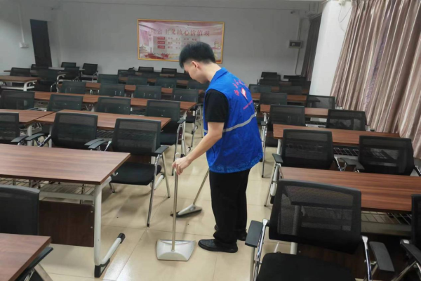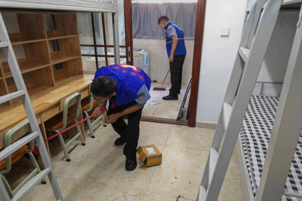 (志愿者清扫毕业班宿舍 张桠铭 摄)
