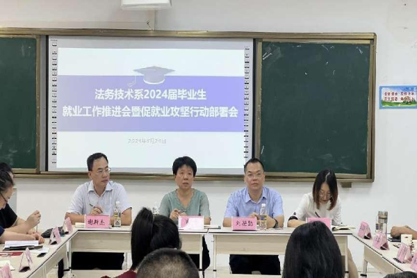 为进一步做好2024届毕业生就业工作,全力促进毕业生高质量充分就业,5月29日下午,我院法务技术系在实训楼613教室召开2024届毕业生就业工作推进会暨促就业攻坚行动部署会。会议邀请招生就业办主任陈芳、副主任谢斯杰出席,系副主任李巍、2024届毕业生全体指导老师、教官辅导员参加会议。会议由系党总支书记刘扬勋主持。