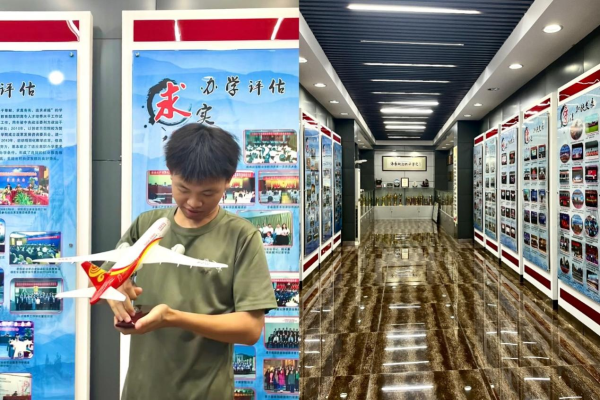 随后,大家来到了校园荣誉展区,这里不仅能够看到一块块闪亮的奖牌,还有拿在手里放在心上都沉甸甸的奖杯。此外,场馆的展台上还摆放着往年杰出校友们的同学录,他们的事迹不仅仅是在这同学录上留下的墨色笔迹,更是海政大家庭历史上不灭的痕迹。