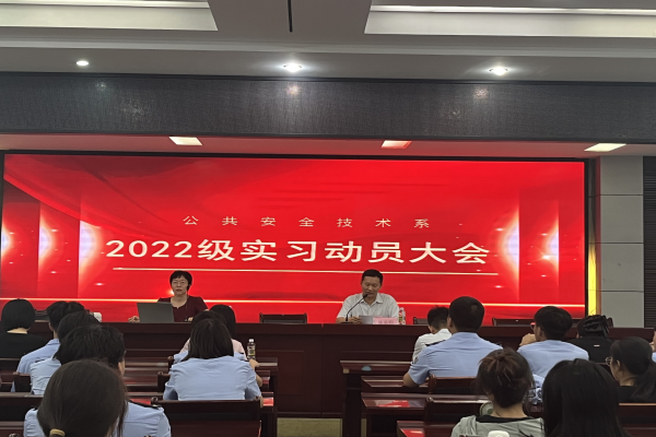 为了做好准备实习学生的实习教育工作,以实习促进高质量就业,让学生明确实习的目的、意义,使学生尽快确立目标,找准实习的方向,6月20号下午,我院公共安全技术系在实训楼一楼报告厅召开2022级实习动员会。