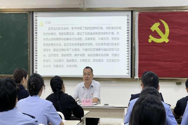 会上,刘扬勋同志带领与会人员共同学习了《中国共产党章程》,围绕着党员的义务和权利做了深入讲解,并指出《中国共产党章程》集中体现了党的性质和宗旨、党的理论和路线方针政策、党的重要主张,规定了党的重要制度和体制机制,是全党必须共同遵守的根本行为规范。他要求党员要做践行党章的模范,不断加强政治理论学习,做到认真学习党章、严格遵守党章、切实贯彻党章、坚决维护党章。在日常工作学习中,要尊崇党章、遵守党章、维护党章,坚定理想信念,对党绝对忠诚。