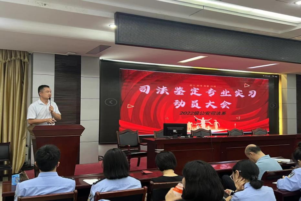 为确保学生岗位实习有序开展,扎实做好学生实习前准备工作,强化责任意识和安全意识,7月8日晚,我院公安司法系在实训楼一楼报告厅召开2022级司法鉴定技术专业学生毕业实习动员会。会议由司法鉴定技术专业负责人王明超老师主持,全体实习指导老师和就业帮扶老师、专业辅导员参加会议。