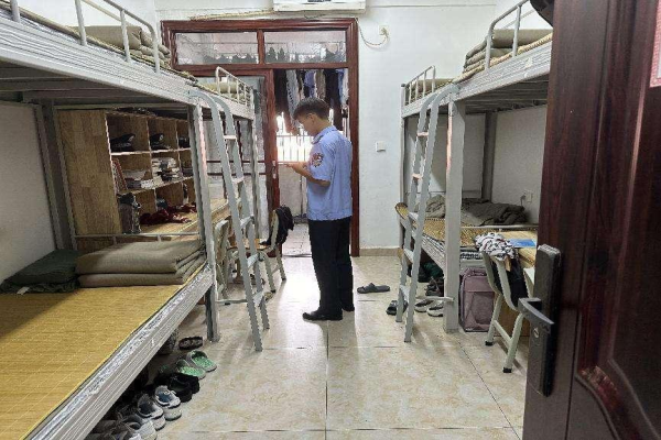 宿舍安全是学生素质教育的重要举措之一,为深入营造良好的生活环境和学习氛围,维护学生安全,6月28日,我院应用法律系军事教官及辅导员带领督察队来到22、23级学生宿舍,对学生宿舍进行安全大检查。排查可能存在的安全隐患。特别关注电器设备的使用情况是否合规,电线插座是否过载、是否使用大功率电器等情况。