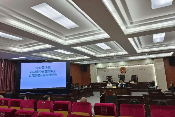 为进一步高质量推进2022级学生实习与2021级毕业生就业工作,落实院系有关指示与要求,7月4日,我院公安司法系治安管理专业在科技法庭组织召开了实习部署会与就业促进会。会议由治管专业带头人朱丽波主持,公安司法系主任宋红彬出席会议并作讲话,全体实习指导老师和就业帮扶老师、专业辅导员参加会议。