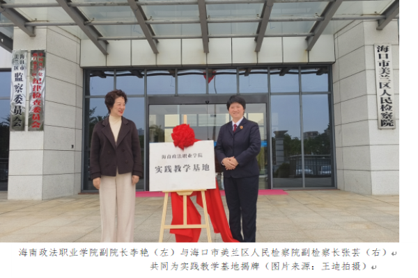 1月23日上午,海南政法职业学院与海口市美兰区人民检察院合作共建实践教学基地正式揭牌。海南政法职业学院副院长李艳、美兰区人民检察院副检察长张芸共同为基地揭牌,双方相关部门负责人、教师代表及检察官共13人参加揭牌仪式,共同见证校检协同育人的重要时刻。