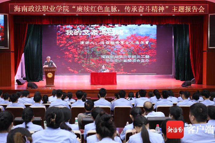 新海南客户端、南海网、南国都市报3月24日消息(记者 任桐)近日,海南政法职业学院举行“赓续红色血脉 传承奋斗精神”主题报告会,特邀冯白驹将军的女儿冯尔曾,讲述冯白驹将军的革命故事。