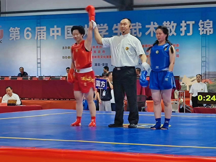 据悉,中国大学生武术散打锦标赛是我国大学生散打比赛的最高水平赛事。本届锦标赛分男女、重量级、类别等共计100余个小项,按单败淘汰制,最终决出各小项金银铜牌。“远踢近打贴身摔”,上演一场场激烈精彩的格斗盛宴。比赛还引入了智能竞赛评分系统,大大提高了赛事的公平性和观赏性。
