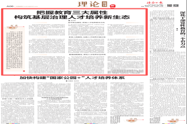 党的二十届四中全会把社会治理放在国家安全体系中去部署。基层社会治理是国家治理的基石,关系海南自贸港政策落地、社会和谐稳定与人民幸福安康。基层社会治理人才培养是提升基层社会治理能力现代化的基础性、先导性、战略性工程。海南省“十五五”规划建议明确提出要“办好人民满意的教育”“提升职业学校办学条件和办学质效”。当前是海南自贸港全岛封关后推进全面深化改革的关键阶段,职业院校要牢牢把握教育的政治属性、人民属性、战略属性,把基层社会治理人才培养放在海南自贸港建设全局中去谋划,放在教育强省战略中去考量,积极探索以实践为导向的教育新生态,努力办好人民满意的职业教育。