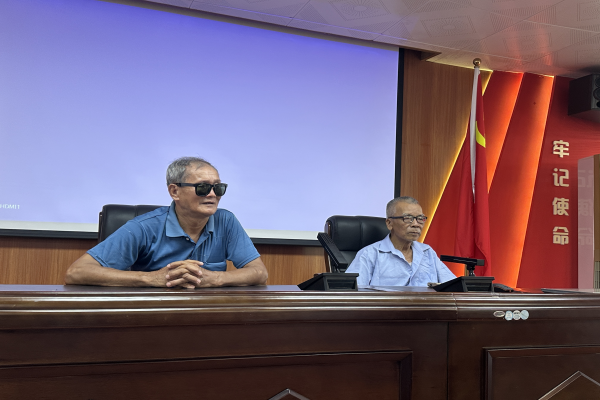 在旧址的会议室里,我们见到了两位精神矍铄、头发斑白的老人——73岁的王澄端和80岁的王澄训。他们胸前的党徽,在阳光映照下熠熠生辉。王澄端爷爷党龄48载,王澄训爷爷党龄52载,合计超过百年的党龄,犹如一本厚重的历史书,等待我们去细细翻阅。“那时生活虽苦,但心却明亮。”王澄端爷爷的话语,将我们带回了20世纪60年代。他讲述自己在1966年于澄迈中学读高中,恰逢文化大革命,学制一缩再缩,但他们仍咬牙完成了学业。