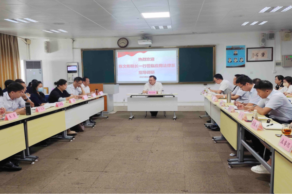 为深入推进学习贯彻习近平新时代中国特色社会主义思想主题教育,牢牢把握“学思想、强党性、重实践、建新功”总要求,多措并举、扎实推进主题教育走深走实,2023年6月7日下午,学院党委副书记、院长陈文彬,学院办公室主任石中晨、质量办负责人李英霞一行莅临应用法律系指导调研。应用法律系主任文维,党总支书记王之业,副主任阳立兵及全体无课教师参加座谈会。