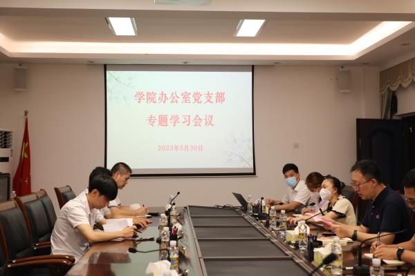 2023年5月30日下午3点,我院办公室党支部组织全体党员在办公楼二楼会议室开展理论学习,集中学习了《习近平新时代中国特色社会主义思想专题摘编》第一章新时代中国特色社会主义思想实现了马克思主义中国化时代化新的飞跃。